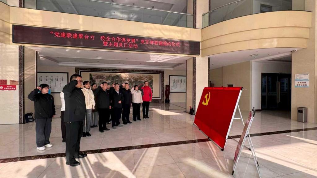 随后,全体党员面向党旗庄严宣誓,重温入党誓词。铿锵有力的誓言回荡在活动现场,进一步坚定了全体党员不忘初心、牢记使命的信念,也凝聚了校企双方以党建为引领、携手共进的决心。